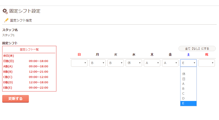 You can easily create shifts for each staff at once by setting fixed shifts for each day of the week, such as full-time and part-time workers, preferred shift times, and preferred holidays. You can also check the overall registration status in a list.