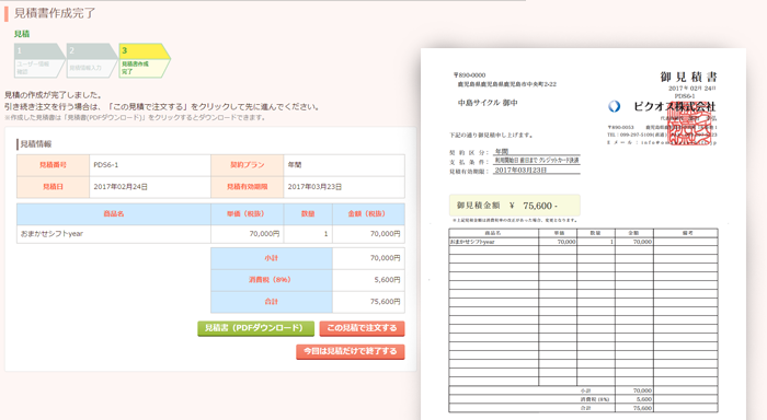 After considering the contract, you can create a quotation and place an order for the contract. (The quotation will be output in pdf format.)